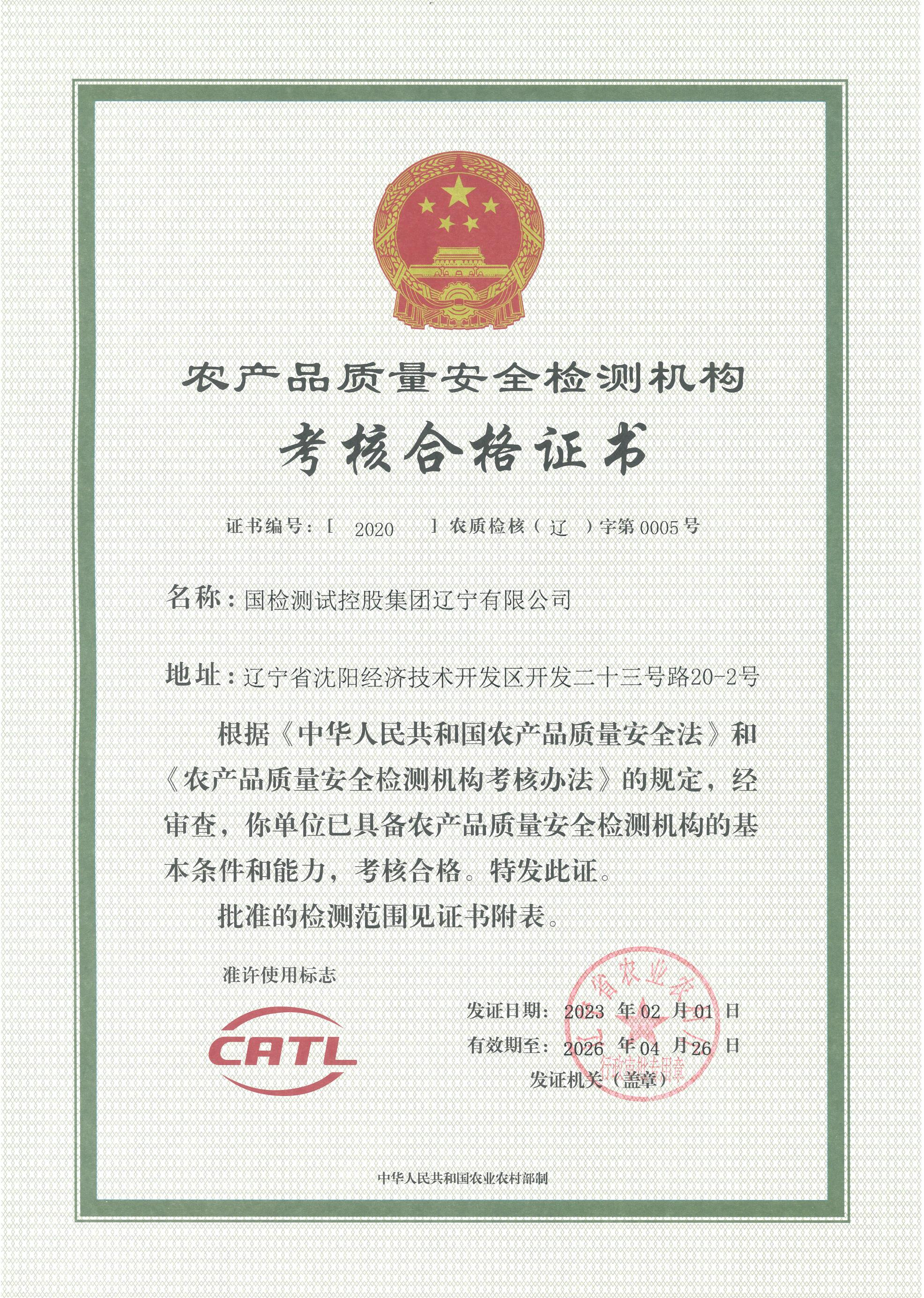 農(nóng)產(chǎn)品質(zhì)量安全檢測(cè)機(jī)構(gòu)認(rèn)定: