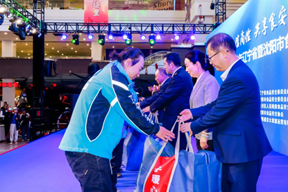 現(xiàn)場聘任13名外賣騎手為沈陽市食品安全社會監(jiān)督員,提高食品安全社會治理效能,并向在“隨手拍”活動表現(xiàn)突出的外賣騎手發(fā)放“暖心包”。